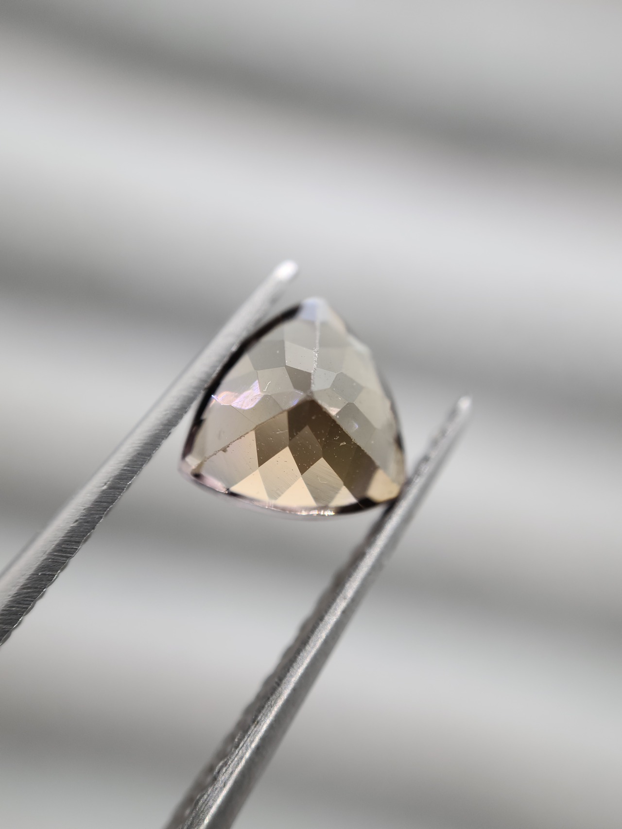 褐色メインのやや暗く見える石ですが、傾けたときに少し見える紫色が、多色性を有するゾイサイトらしい1石です。