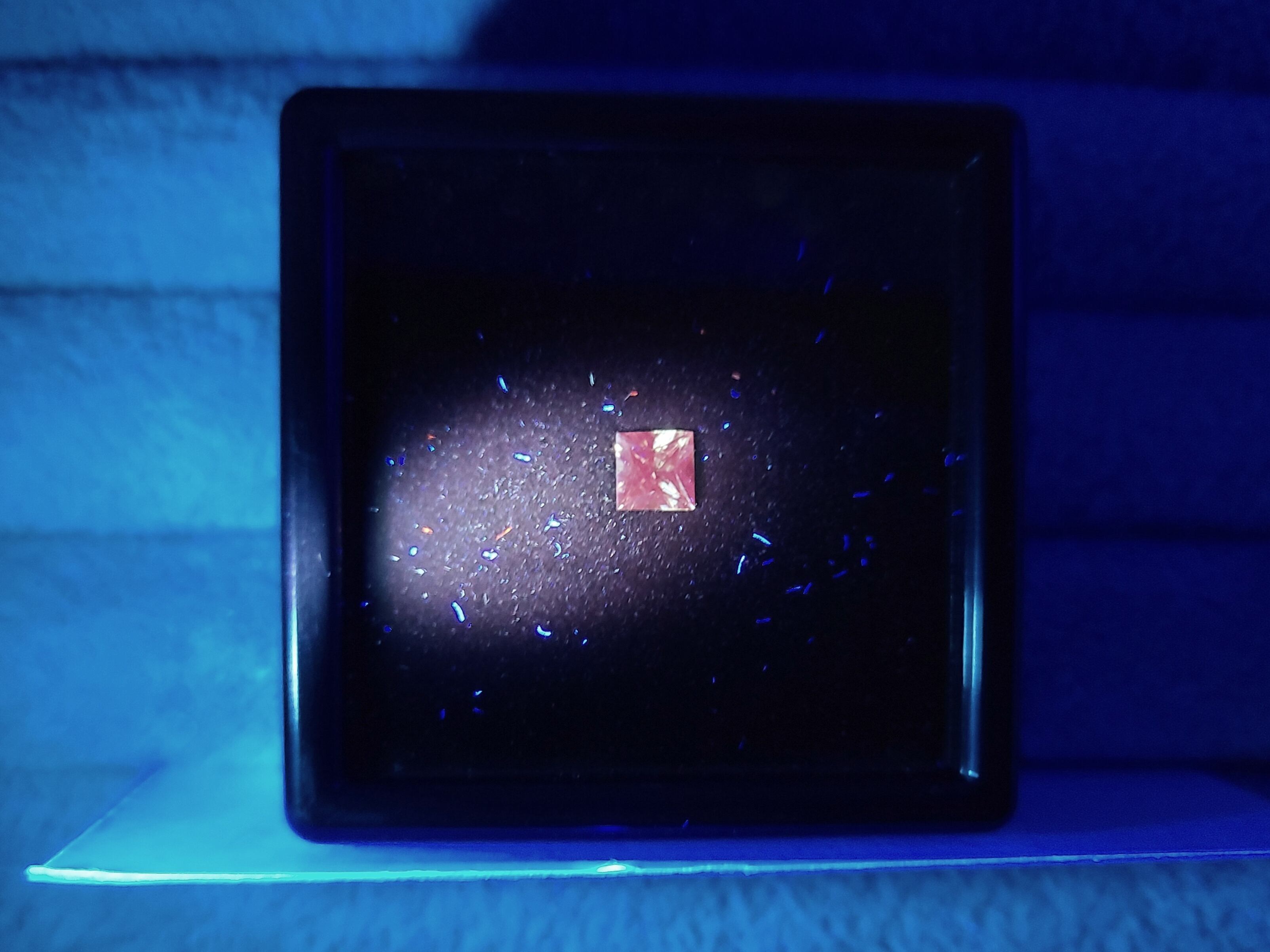 UVライトの下で赤色に蛍光するタイプ、流通名としてはドラゴンガーネットと呼ばれるガーネットとなります。
