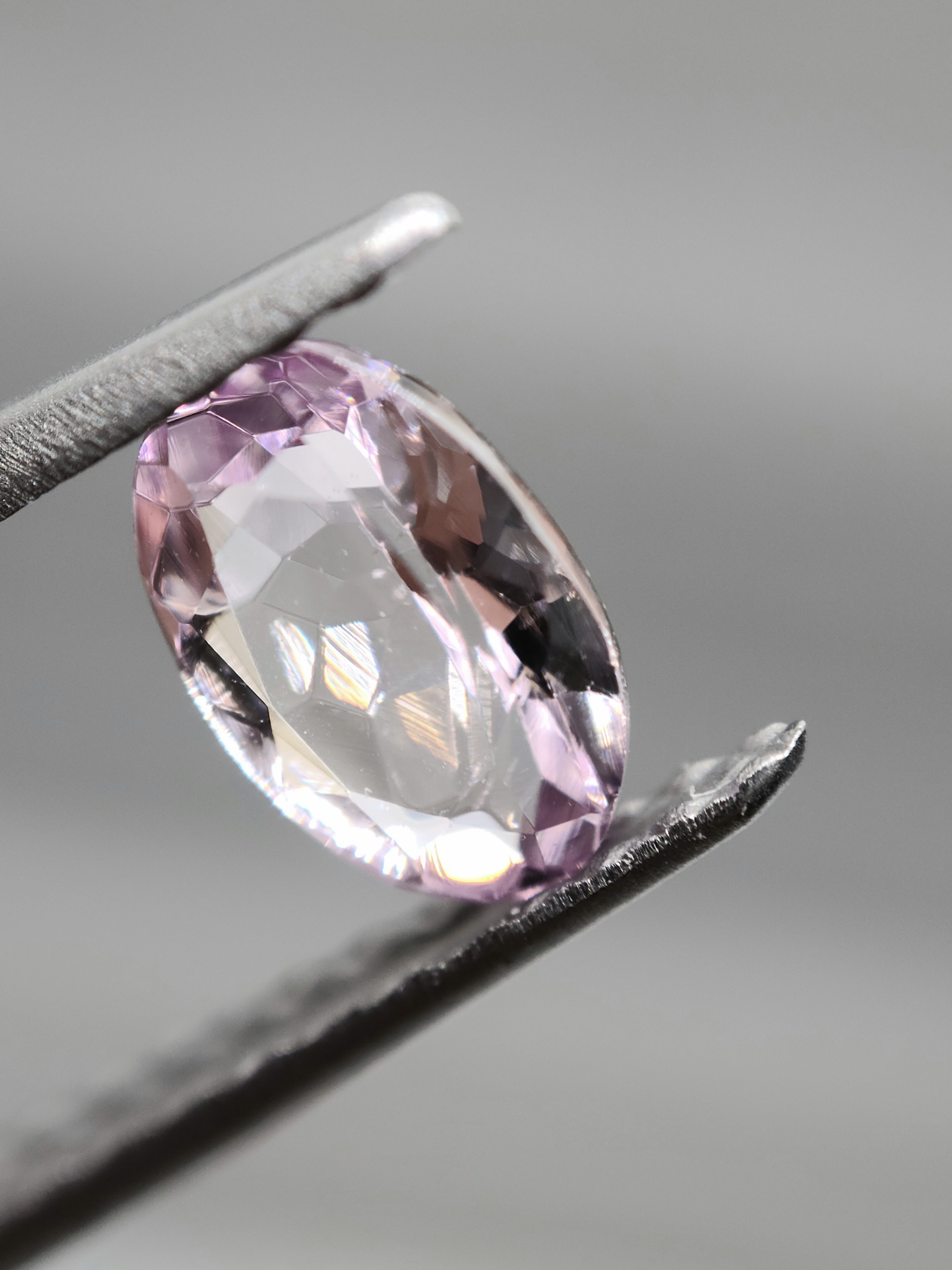 淡いピンク色のゾイサイト。他の色を含まず、ピンク色と認識できる一石。