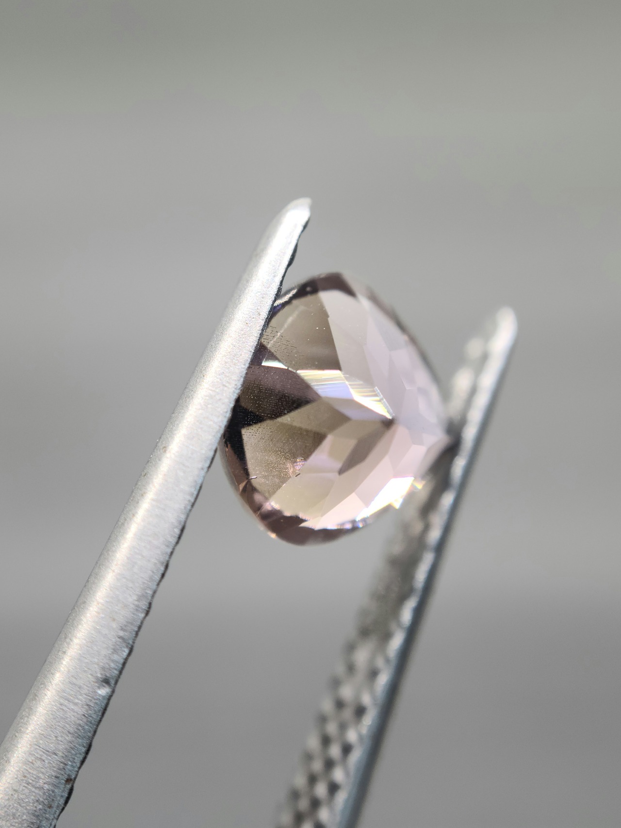 非加熱らしい褐色+ピンク、そして紫や黄色も見えるゾイサイト。