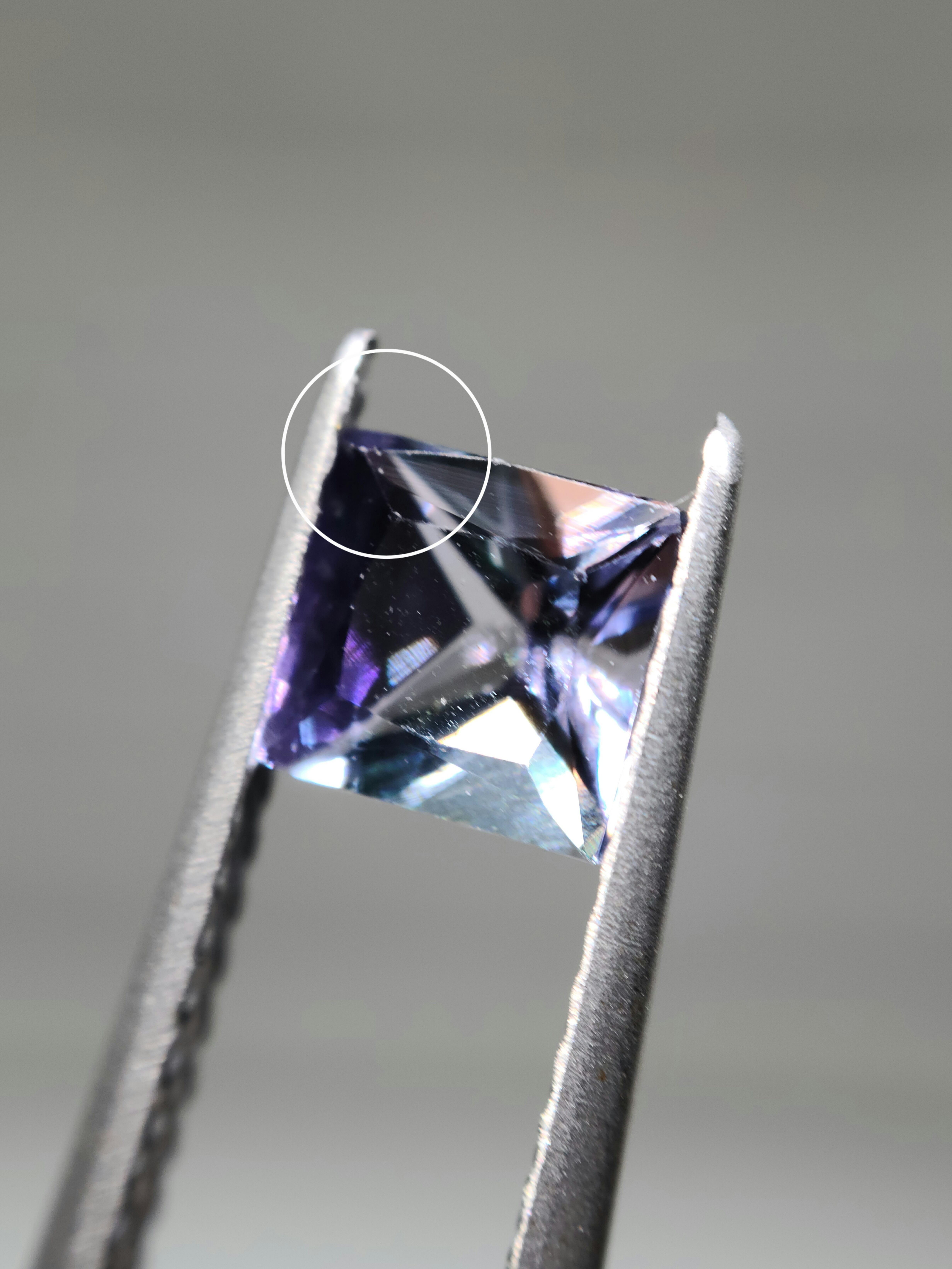 お写真にありますように、ガードル部分からクラウン部分にかけて、カットによる形の崩れがあります。前面から見た時の全体の形状には大きな影響はございませんが、気になる方はご購入をお控えください。