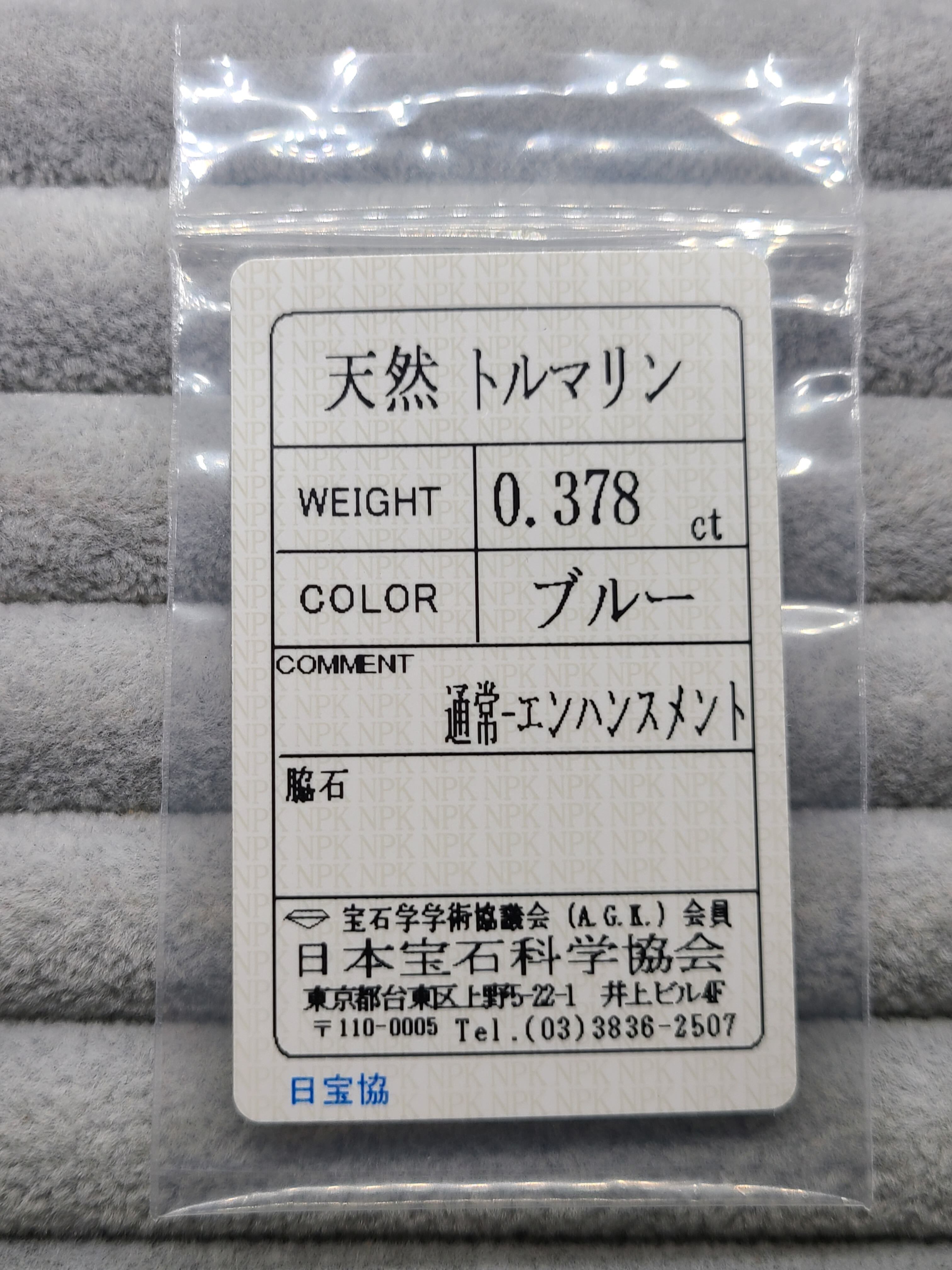 日宝協ソ付き 天然トルマリン 0.378カラット