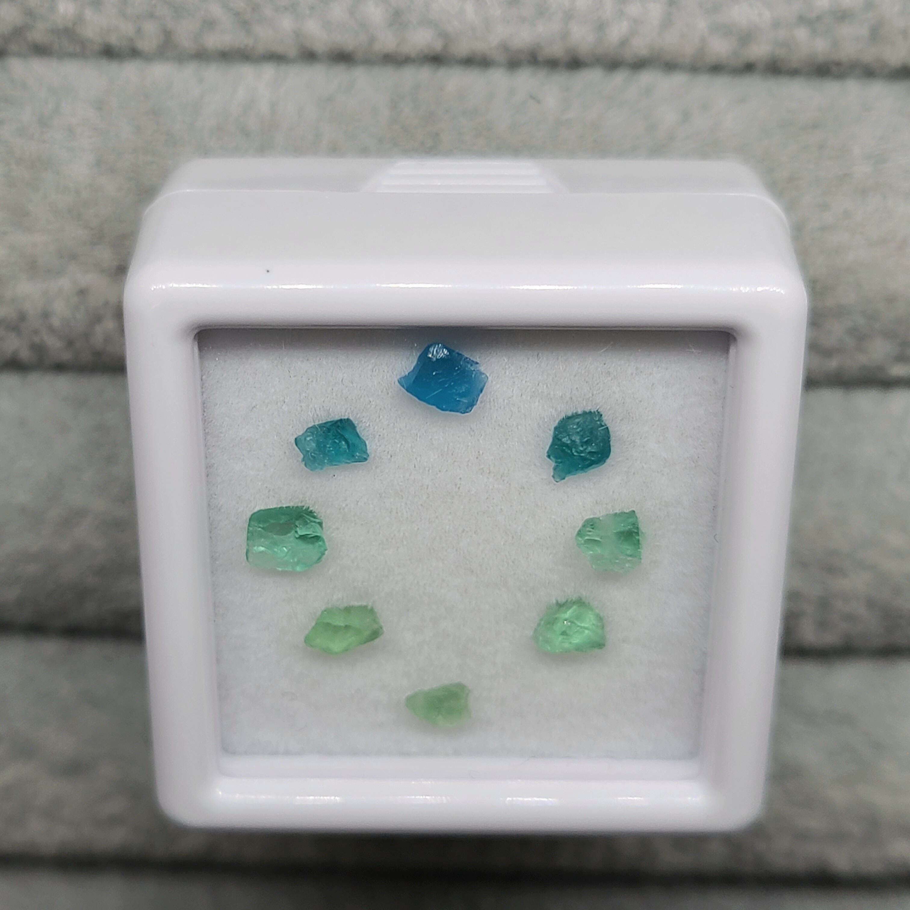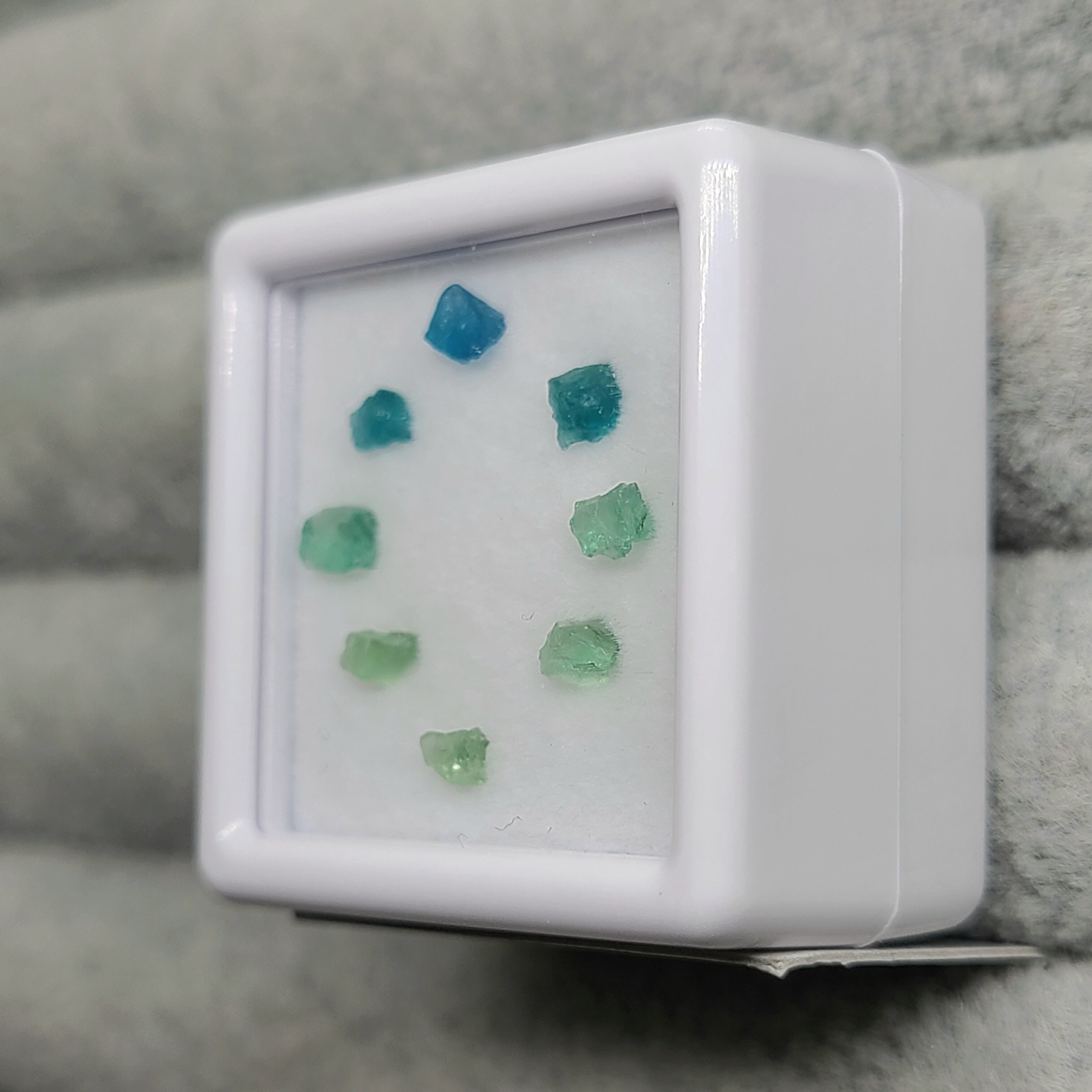 黄緑から青色までの小さな原石を詰めたグラデーションセットです。