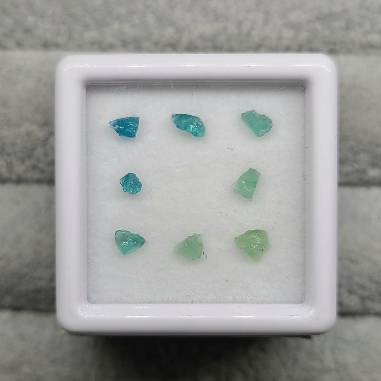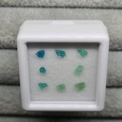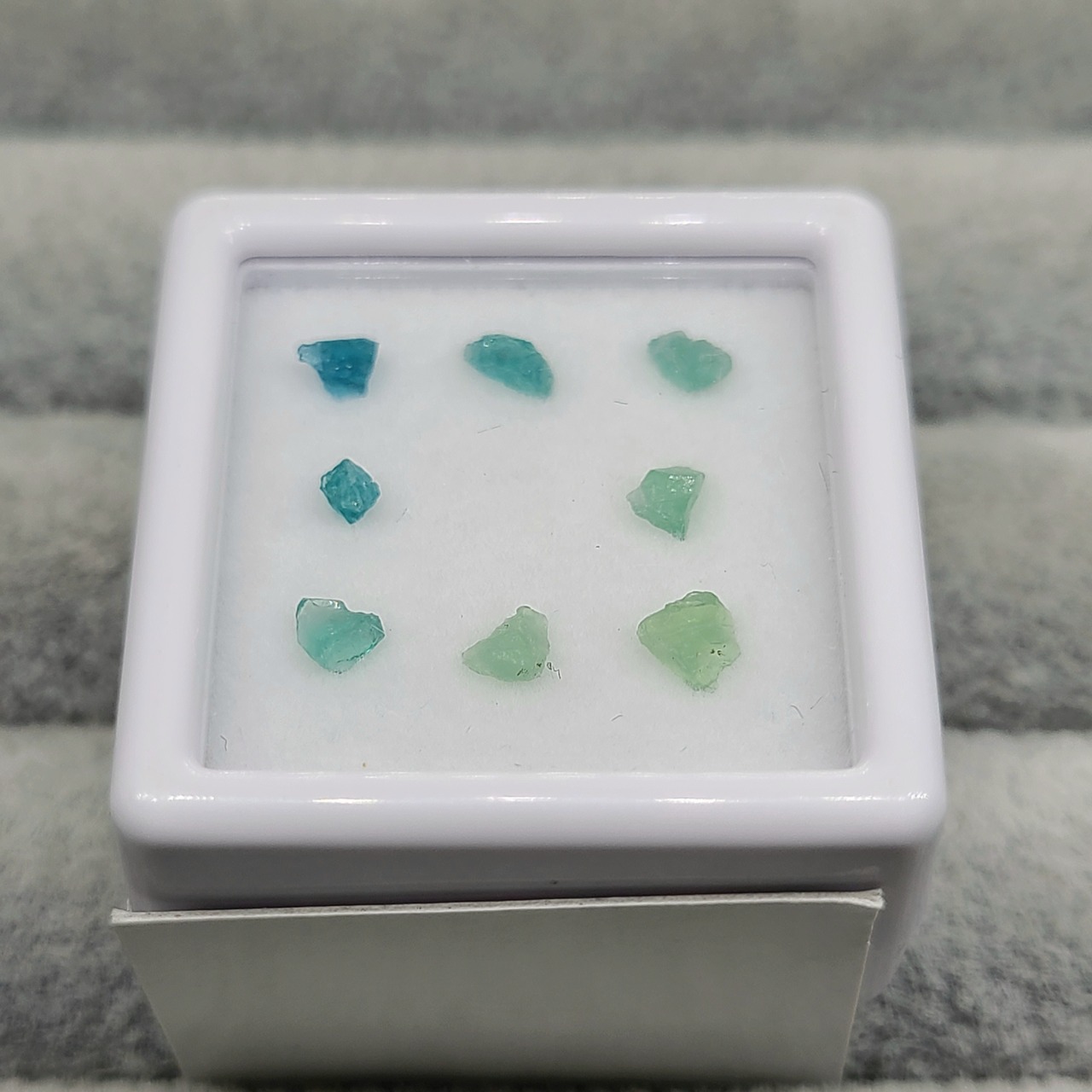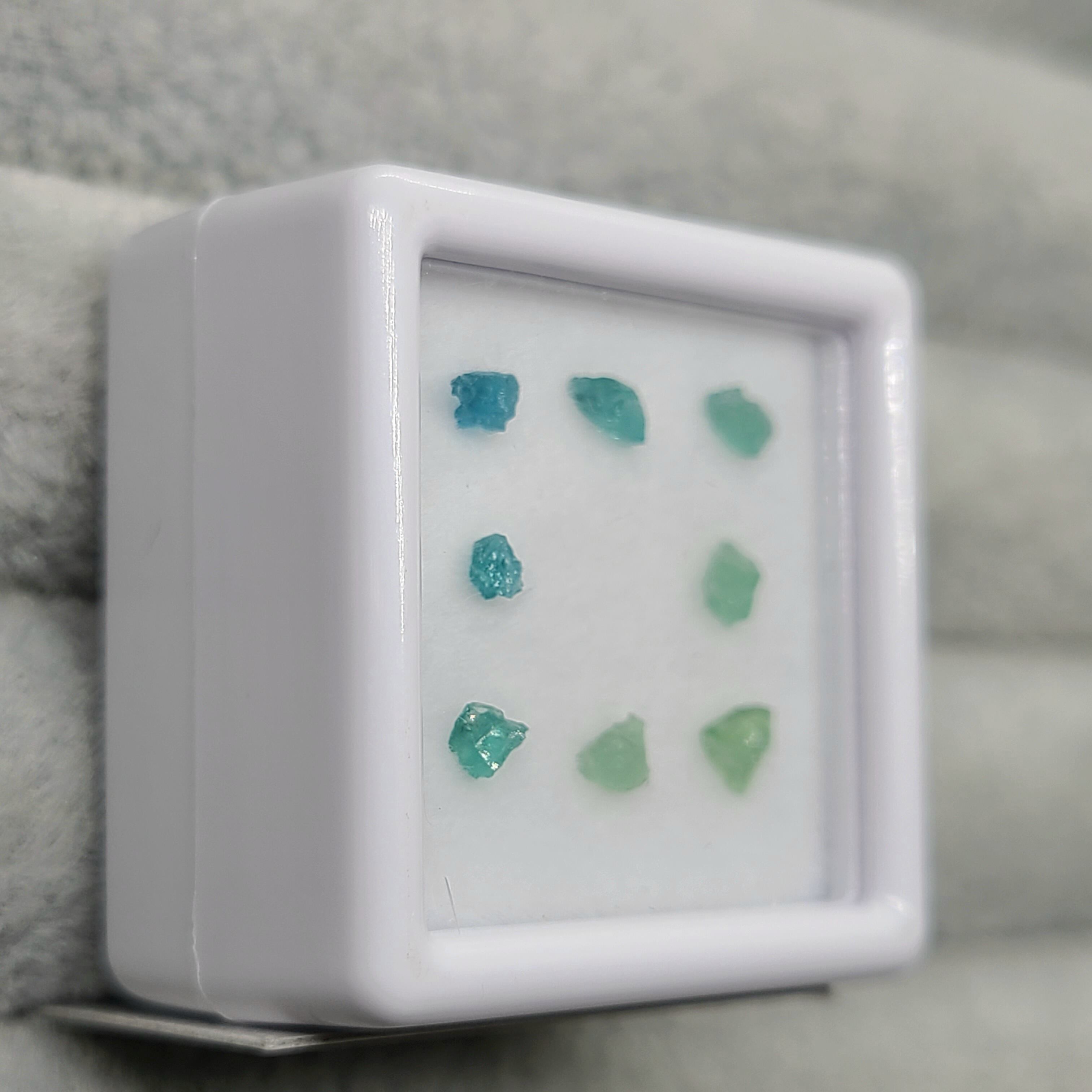 黄緑から青色までの小さな原石を詰めたグラデーションセットです。