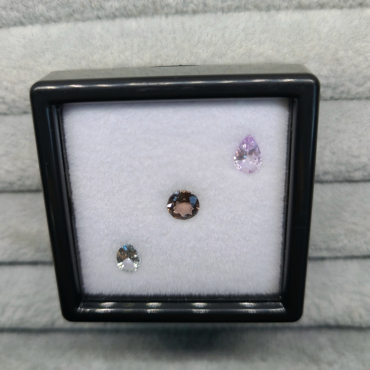 非加熱褐色系のゾイサイトとグリーン系、紫(一部ピンク)系と、青紫色のタンザナイト以外のゾイサイトを代表する色の石をセットにしました。