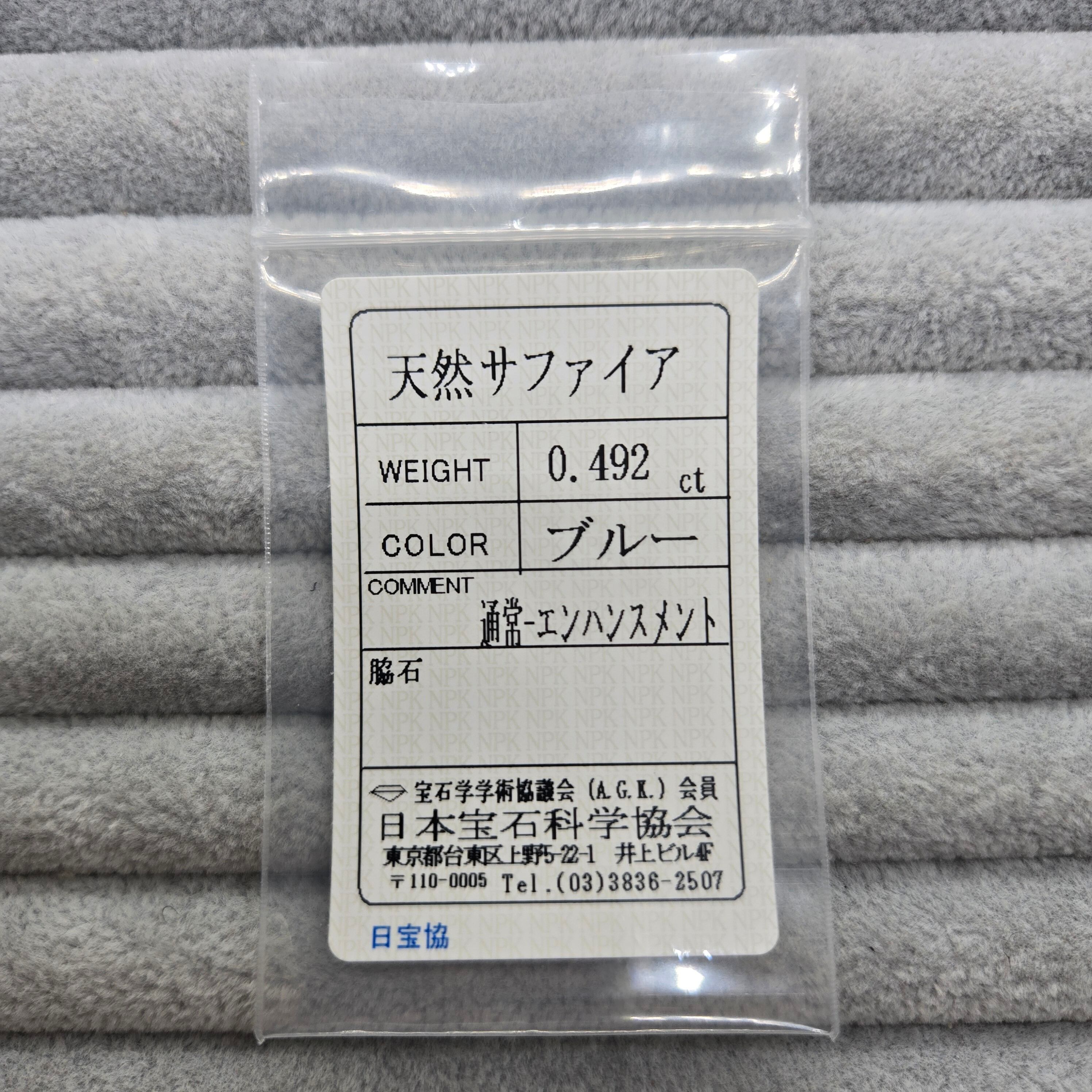 メインのサファイアは日本宝石科学協会様のソーティングつきとなります。