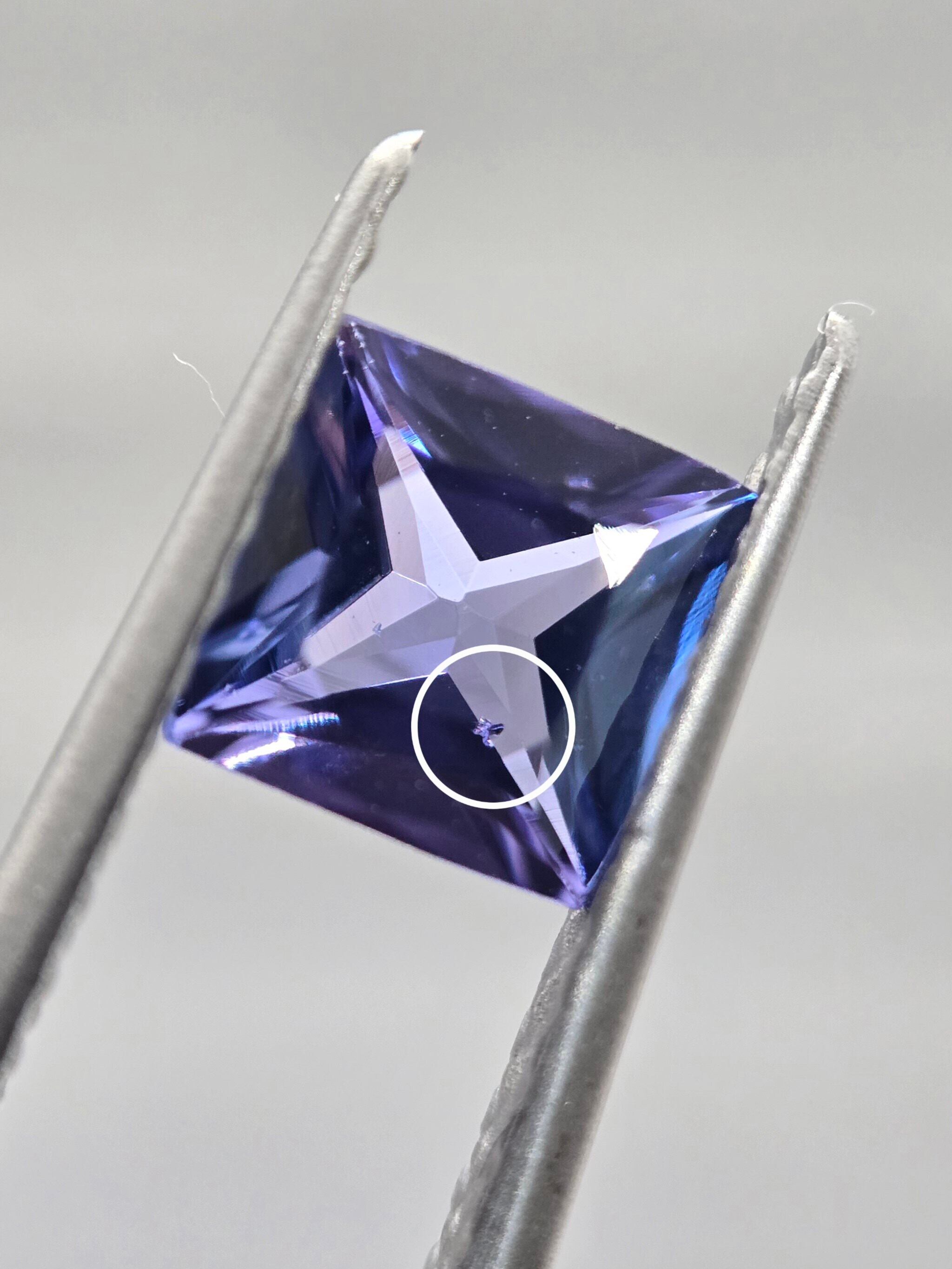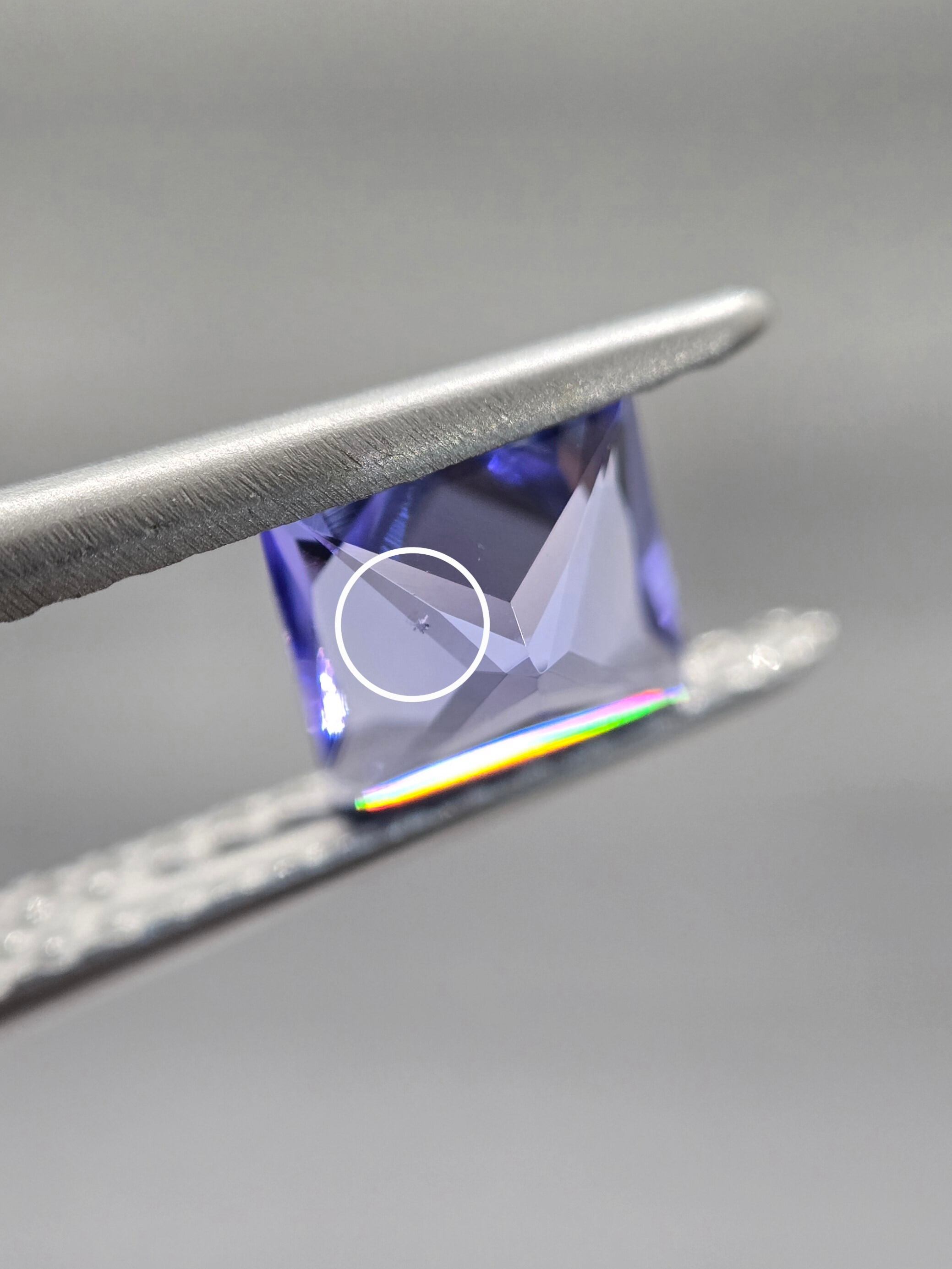 写真にありますようにパビリオン側に小さなキズがあります。それにより正面から見たときにも目視できます。